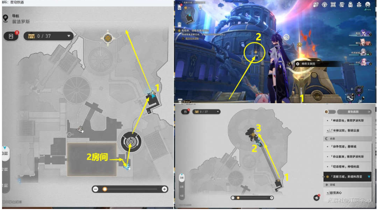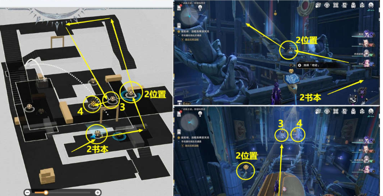 (6)接着出2房间后,继续追踪任务,然后再去1位置获取符文后直接从空中去2位置,在2位置放回符文后再去3位置对话即可,后续过一大段剧情后,任务完结