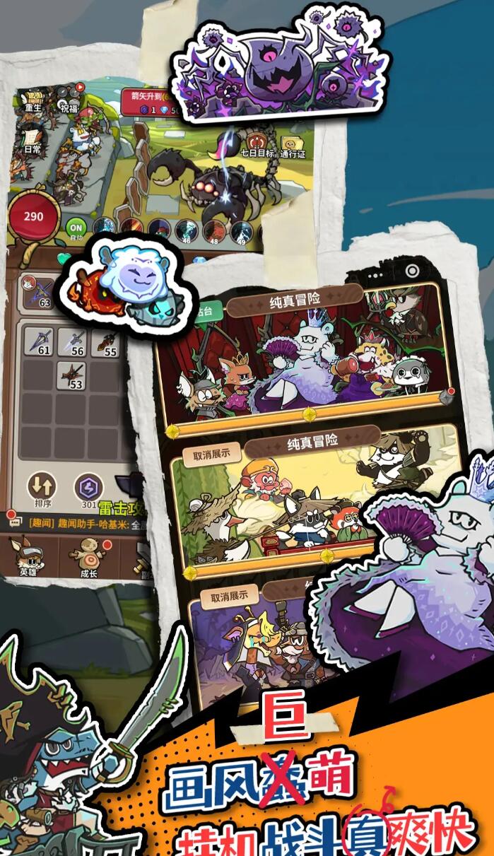 本作强调深度角色养成体系,全游戏共设48位可收集英雄。每位英雄均需从等级、基础属性、主动/被动技能、装备搭配等多个维度进行个性化培养。尽管所有角色统一采用萌系动物形象,但其定位差异显著:有前排承伤型、后排爆发型、辅助控制型及持续治疗型等,策略适配性远超表面画风所呈现的轻松感。