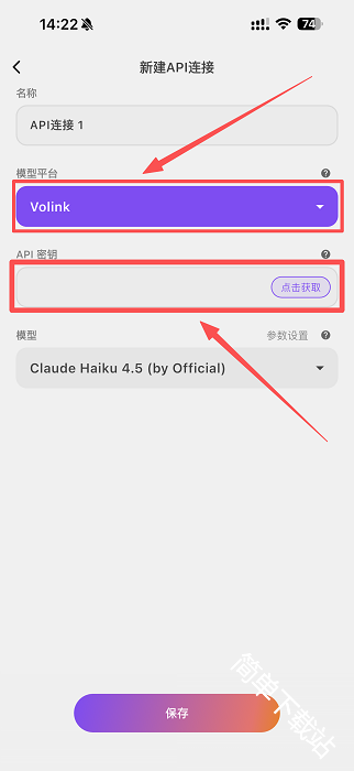 5、填入API并选择对应的模型平台和模型点击保存