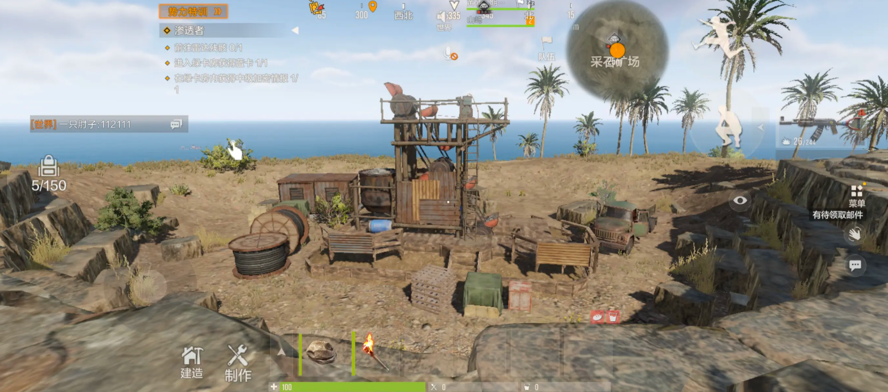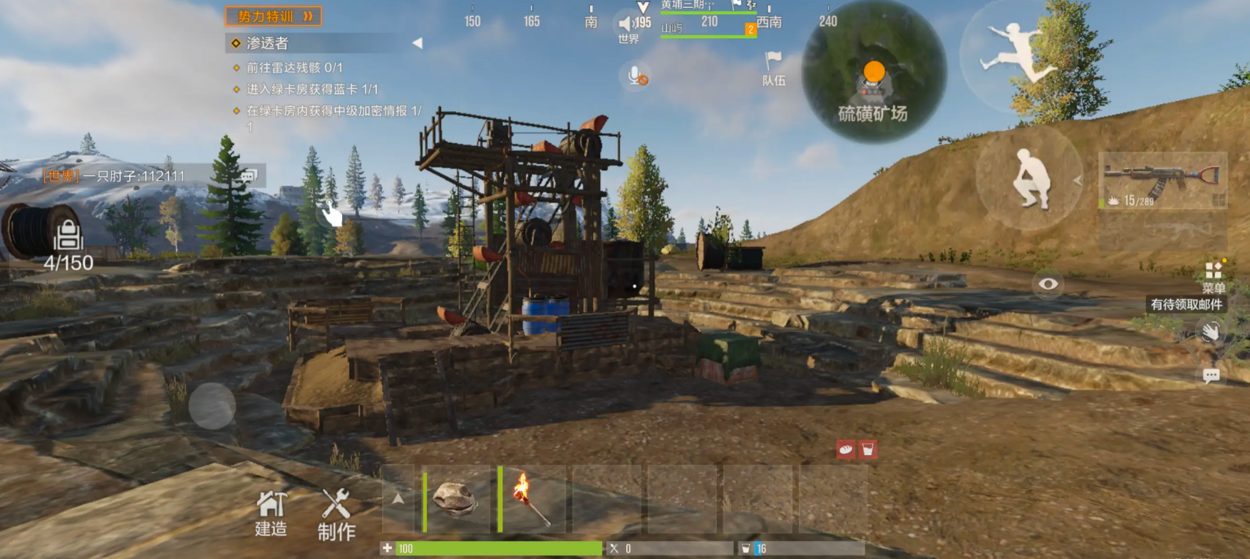 硫磺矿场是中期阶段的重点目标。地图上标记得挺明显的,分布的位置也比较开阔,没什么天然的掩体,所以开采的时候要注意观察周围有没有其他玩家靠近。好在这里没有野怪干扰,新手过来采集压力不大。硫磺矿石是用来做火药和高级武器的,等你解锁了那些厉害的武器之后就知道这东西有多重要了。不过有个地方需要注意,用油桶开采硫磺其实不太划算,一个油桶只能出1000个硫磺,性价比比较低。前期建议买把电镐自己挖,一个矿脉能挖出将近500个硫磺,效率高多了。前期少量采集一些够过渡就可以,不用囤太多。