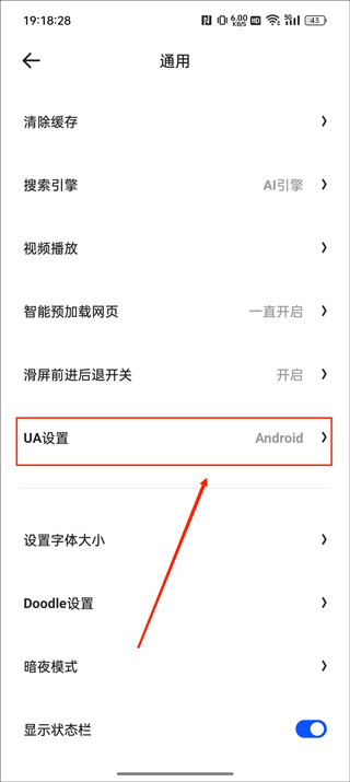 紧接着选择【UA设置】