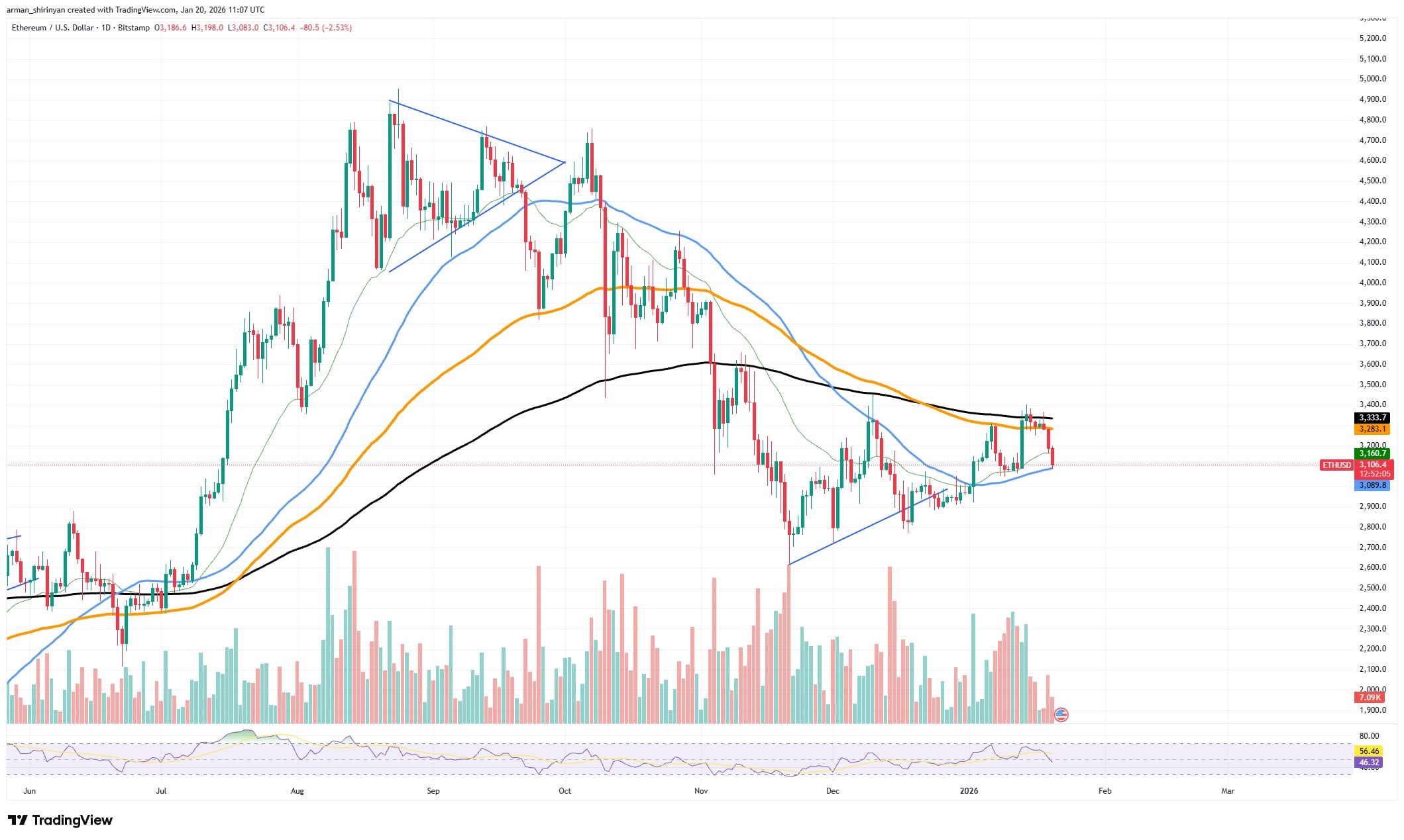 这是信念的碰撞,而非对冲噪音。这种张力体现在价格行为中:在关键决策区域附近,以太坊持续窄幅震荡——既未能向上突破,也未流畅下跌。多头与空头分别狙击每一次回撤与反弹。