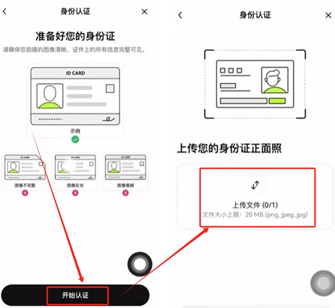 注册成功后需立即完成实名认证。选择身份 件认证方式,按要求上传清晰的证件正反面照片,并通过简单的人脸识别即可完成验证。