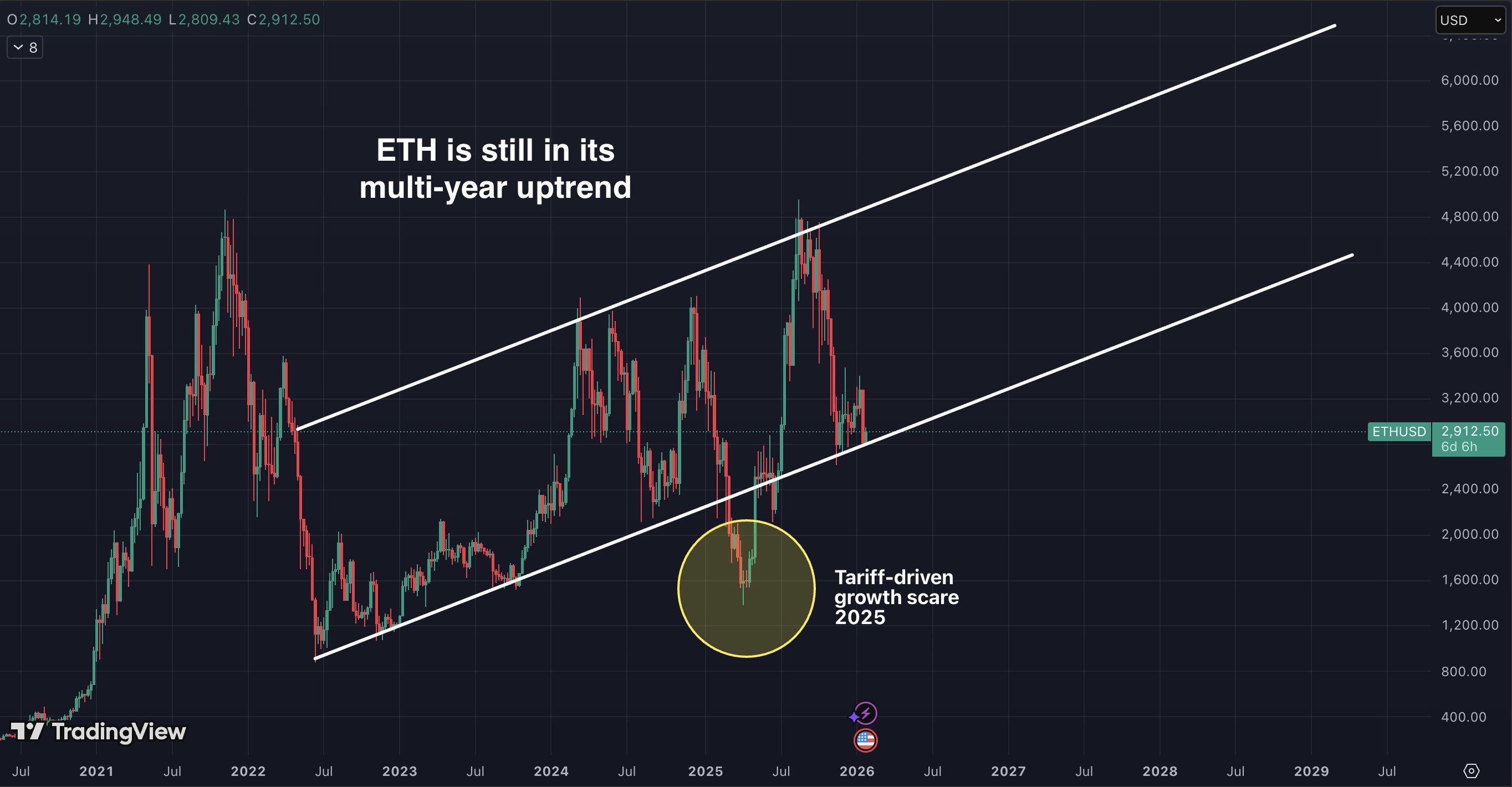 "正是这类机构积累行为让$ETH保持上升通道。更重要的是,当宏观冲击暂时使价格偏离时,它能帮助价格重回通道。"