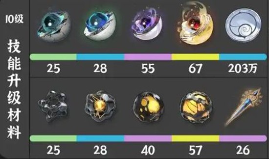 天赋升级需要贝币、各阶段隧体绳链材料、忆中沉金,以及海蚀碎晶系列材料包括低频、中频、高频和全频海蚀碎晶。建议优先刷取海蚀碎晶,这类材料在多个角色养成中都有需求,可与其他衍射属性角色同步规划。