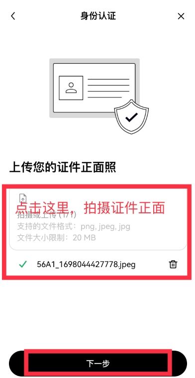 4.根据系统要求对身份证件的正面(人像面)进行拍摄。点击“下一步”。