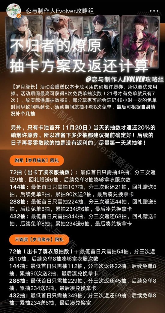 2.春节ur,144大保底,但是会返20%,也就是说你第一天的话,最好下111抽,因为111*0.2=22抽,加上免单的10抽,开始送的1抽,刚好就是111+22+11=144抽,但是这种的话,大家必须得规划好了。