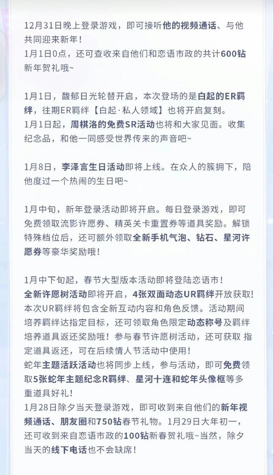 恋与制作人制作组茶水间总结 一月反馈回应简要总结