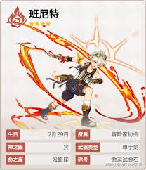 班尼特是一名火元素辅助角色。他的普通攻击和重击能造成火元素伤害,在破盾等方面有一定作用。其元素战技“热情过载”,向前挥舞大剑,造成多段火元素伤害,命中敌人可使自身攻击力提升,持续一段时间,这是班尼特辅助能力的关键之一。元素爆发“美妙旅程”更是强大,能为队伍全体提供高额攻击力加成,持续时间较长,并且在技能持续期间,队伍角色死亡还能复活,堪称团队续航与输出提升的利器。