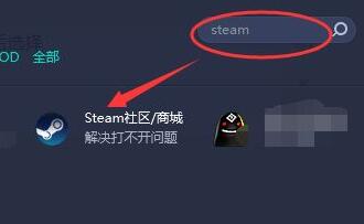2、首先下载安装uu加速I器,在右上角搜索并打开“steam社区/商城”