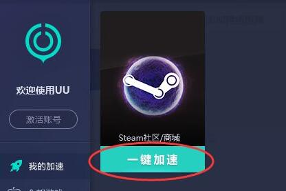 3、然后点击“一键加速”,再打开steam应该就可以了。