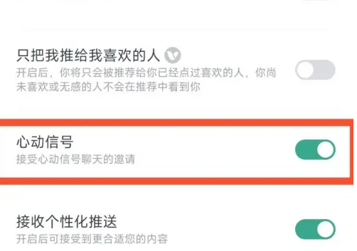 进入页面后,点击《心动信号》后面选框开启即可。