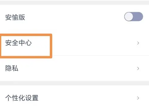 在设置页面点击安全中心