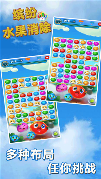 1、缤纷水果消除手游,全新的手游模式,一起去掌握更多的消除技巧;