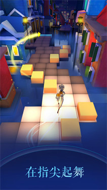 5、场景中会有单个的高台,上边有蓝色的标识,这也是弹跳的标识,跳起来之后控制左右方向,然后跳动到下一个落脚点,有时候高台中的台阶会进行变化,在变化的同时要迅速做出判断,滑动的快点基本没问题