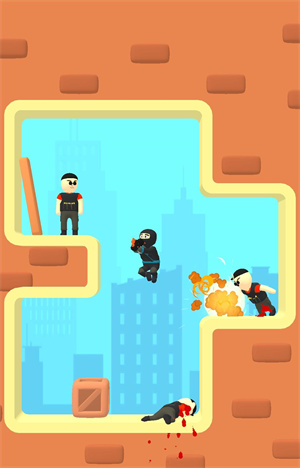 1、运用障碍物灵活的躲避周围敌人发射的子弹,不断完成新的射击任务。