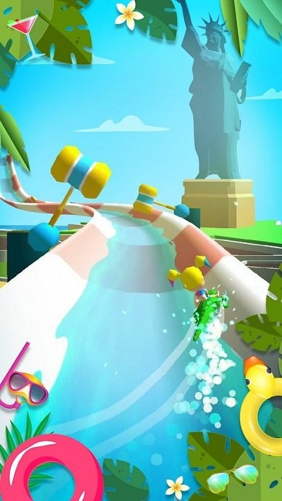 充满趣味的休闲类的卡通游戏,在游戏里面有各种水上游乐设施可以体验,在水上滑梯和对手开始追逐赛,跟其他的人展开激烈的追逐,感受非常愉悦的游戏快乐,在不断的漂流中体验水中的清爽。