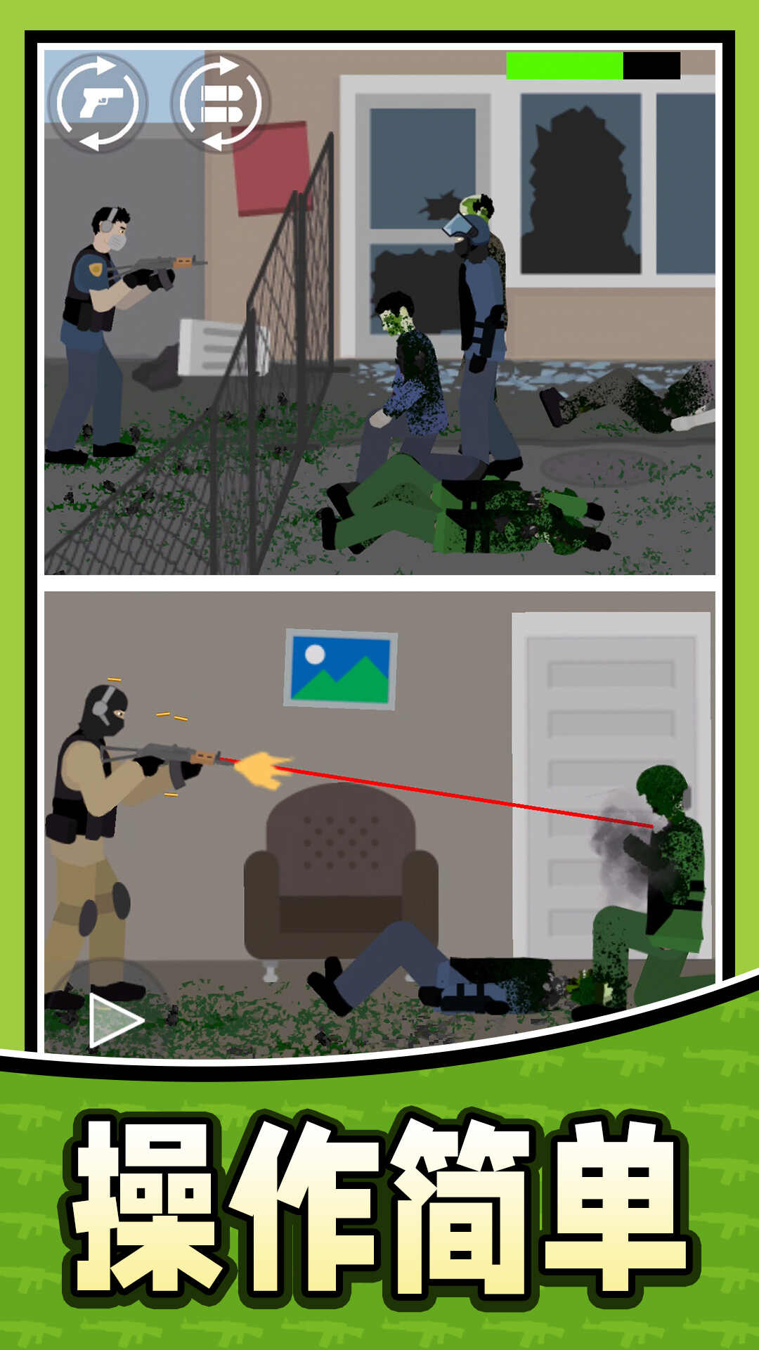 1、游戏操作简单,在游戏里玩家可以很轻松的上手掌握,随时进入游戏进行射击体验。