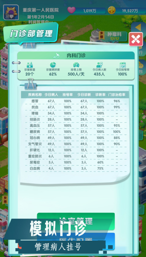 1、使用招募功能就可以对更多的医生快速招募,让医院里面的高级医生变得越来越多。