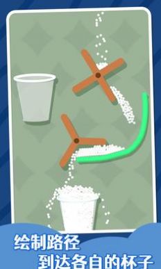 3、用户需要将要使各色各样的沙子倒入杯子里,绘制一条可以使液体通过单不会溢出的路。