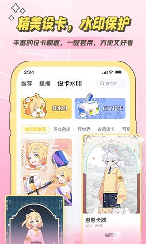 1、制作出属于自己的设卡,根据需求制作出独一无二的设卡,尽情展示自己的创作才华;