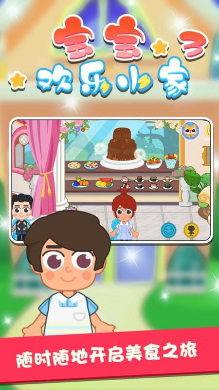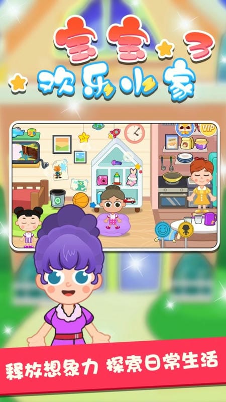 - 宝宝欢乐小家III是一款专为幼儿设计的过家家生活模拟小游戏,为孩子们打造了一个充满想象与趣味的虚拟小天地,游戏包含现实世界中的七大场景,从温馨的