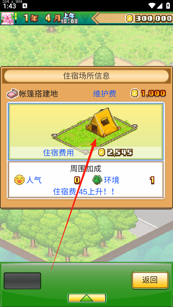 3、生态经营技巧:设置观察野鸟等特色活动吸引游客,优化环境吸引动物停留,使用低成本的木屋白杨树起步,后期逐步升级为豪华设施提升品质。