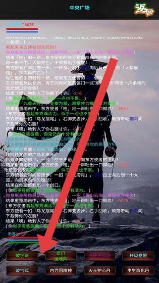 1、在【中央广场】战斗时,留意技能栏如【破字诀】等技能,根据战斗情况合理释放,注意自身血量和内力值。