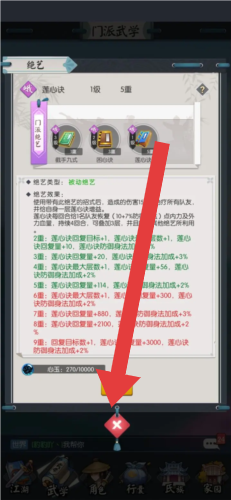 2、游戏中门派武学丰富,像【漂心诀】这类技艺,要留意其技能效果和等级提升方式,通过提升武学等级,增强角色内力。
