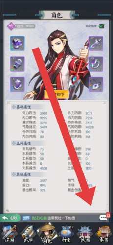 3、角色属性面板很关键,了解自身【基础属性】如内外力攻防、气血等数值,依据属性情况,合理搭配装备、修炼武学。