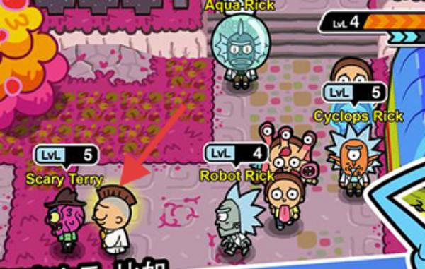 3、攻击箭头指向的“HotMorty”,进行战斗,提升己方莫蒂等级与能力。