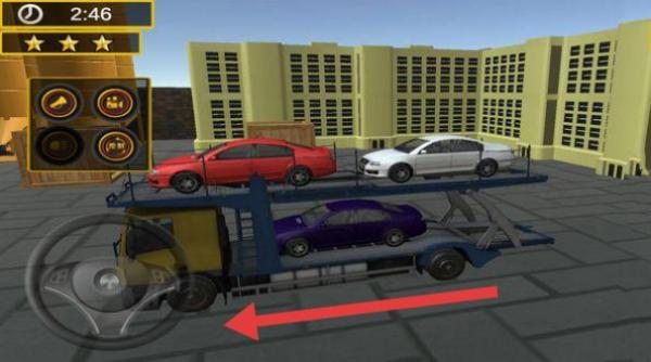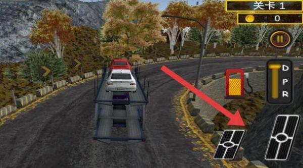 3、抵达目标地点后,按箭头指示转动方向盘,操控车辆完成停车或装卸任务。