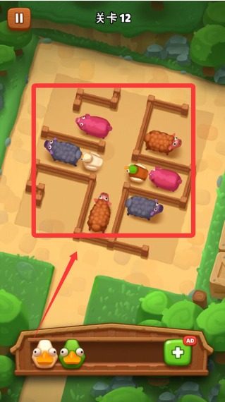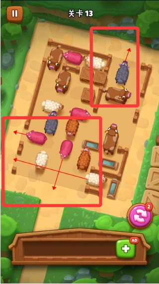 1、进入游戏后,需要移动栅栏里的动物将所有动物都赶出来进行两两匹配。