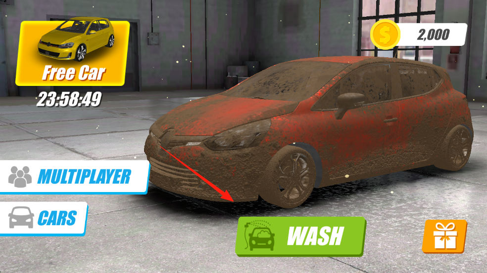 1、在游戏的主界面上,可以点击【WASH】的按钮开始洗车任务。