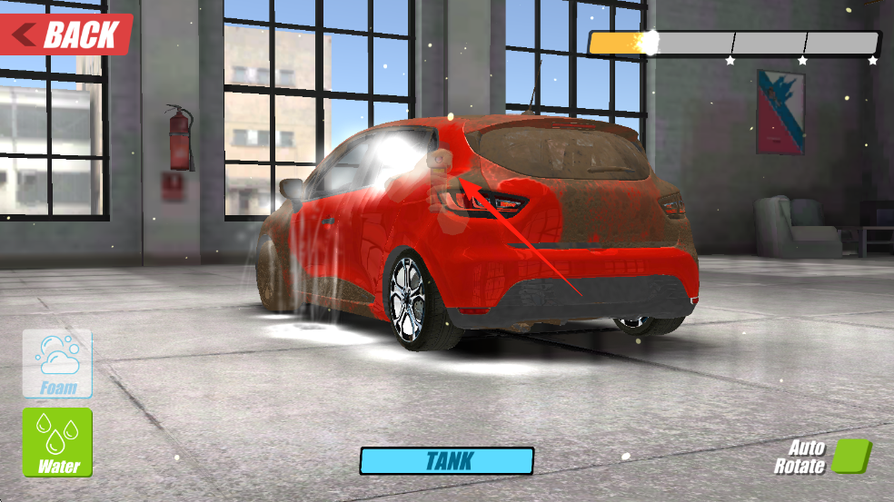 1、真实洗车流程模拟:从喷水打湿车身、涂抹洗车泡沫,到用抹布擦拭、水枪冲洗,再到擦干打蜡,完整还原现实洗车的每一步,让玩家沉浸式体验专业洗车过程。