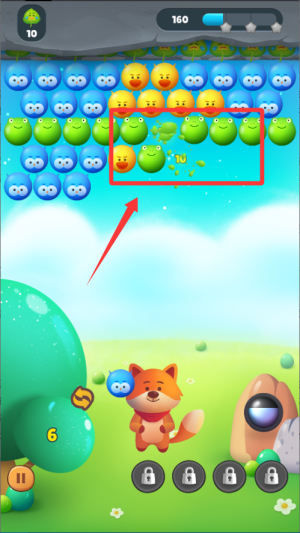 1、通过手指滑动调整发射角度,松开后射出泡泡。目标是将相同颜色的泡泡连接在一起,凑齐三个或以上即可消除。