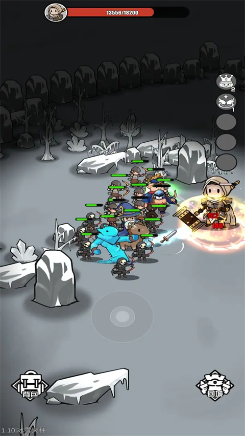 1、资源收集养成:击败小怪掉落武器装备与升级资源,可强化英雄属性和部队战力,体验逐步成长的成就感。