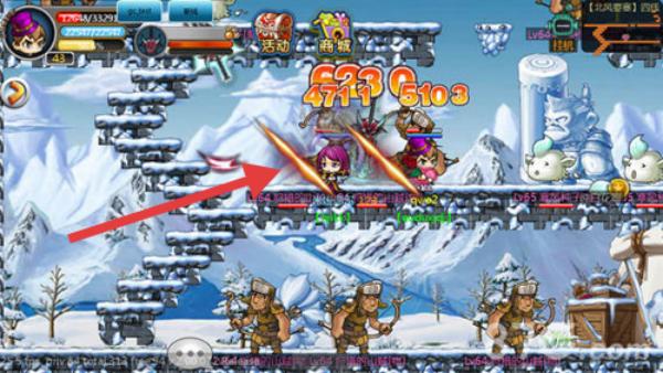 2、在雪地关卡战斗,操控角色攻击敌人,留意技能数值显示,把握战斗节奏。