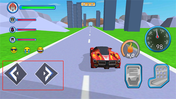 3、点击左下角的按钮来控制赛车的方向,然后其他的按键可以控制加速和减速。