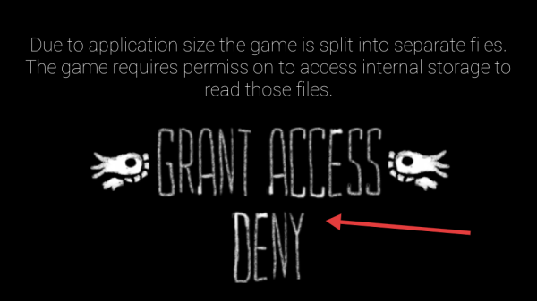 1、若继续游戏,点击【GRANTACCESS】授予存储访问权限;若拒绝,点击【DENY】,按需操作。