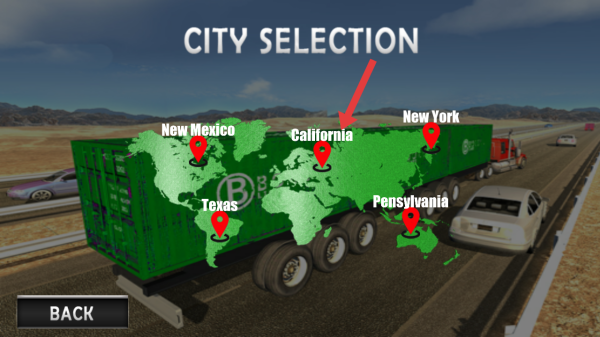 2、在城市选择的界面,可以选择【California】来作为起始运输的城市,开启运输任务。
