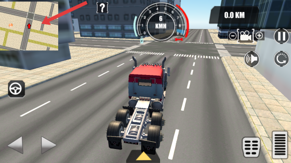 3、需要参考左上角的地图指引(红色箭头指向),来驾驶卡车沿道路行驶,按路线完成运输。
