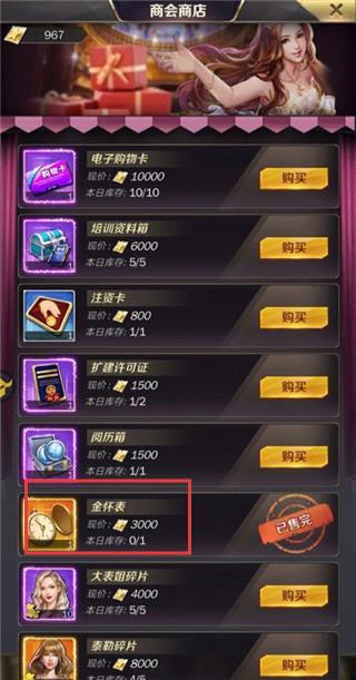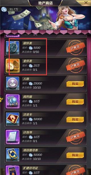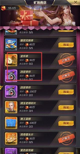 3、矿场商店第八天才会开放,也是全部商店中好货最多的,三大件必买金表,齿轮,传奇猎头券。