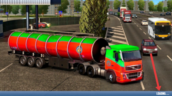 1、等待油轮卡车货运模拟器的游戏【LOADING....】完成,进入游戏场景,准备开始驾驶操作。