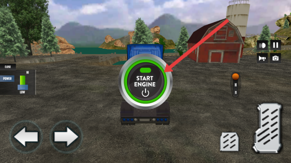 2、在油轮卡车货运模拟器的游戏界面中,点击按钮启动车辆引擎,为驾驶做好准备。