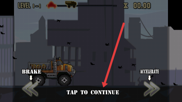 2、进入LEVEL1-1,点击【TAPTOCONTINUE】开始游戏,通过【BRAKE】和【ACCELERATE】控制卡车前进。