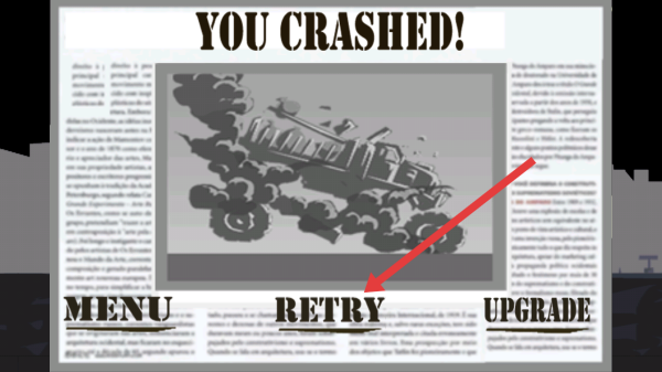 3、当驾驶车辆翻车时,则游戏失败需要重新开始,会出现【RETRY】的按钮点击重新开始。