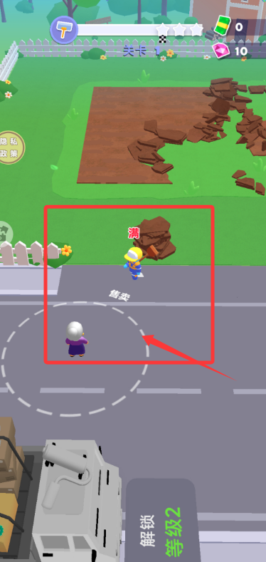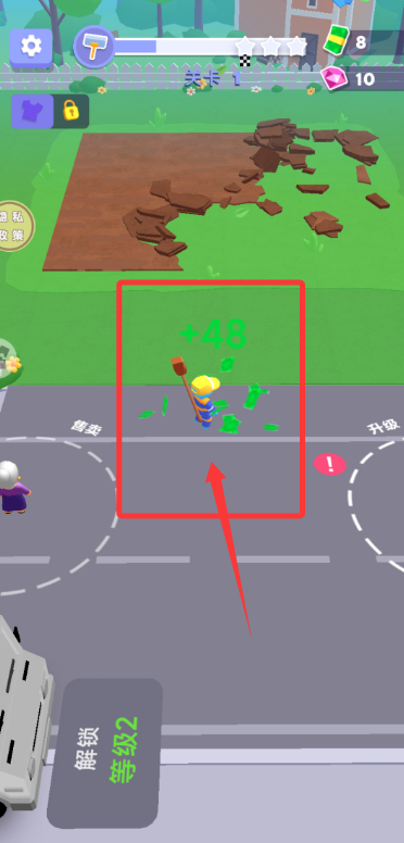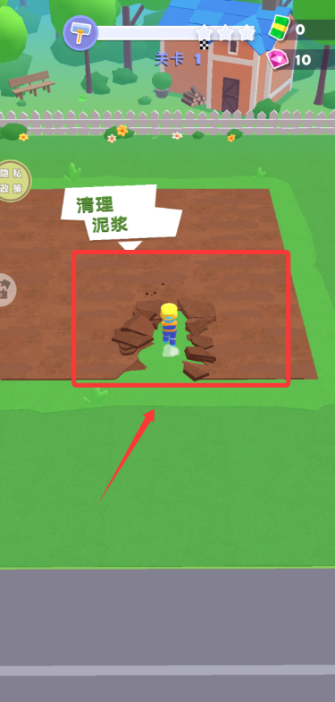 1、启动游戏,根据指引点击屏幕移动工人,操作挖掘设备清理施工现场的泥浆。