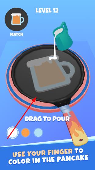 3、在经营过程中滑动屏幕查看顾客订单,点击食材制作面糊,拖动工具摊制煎饼,添加配料完成订单获取收益。