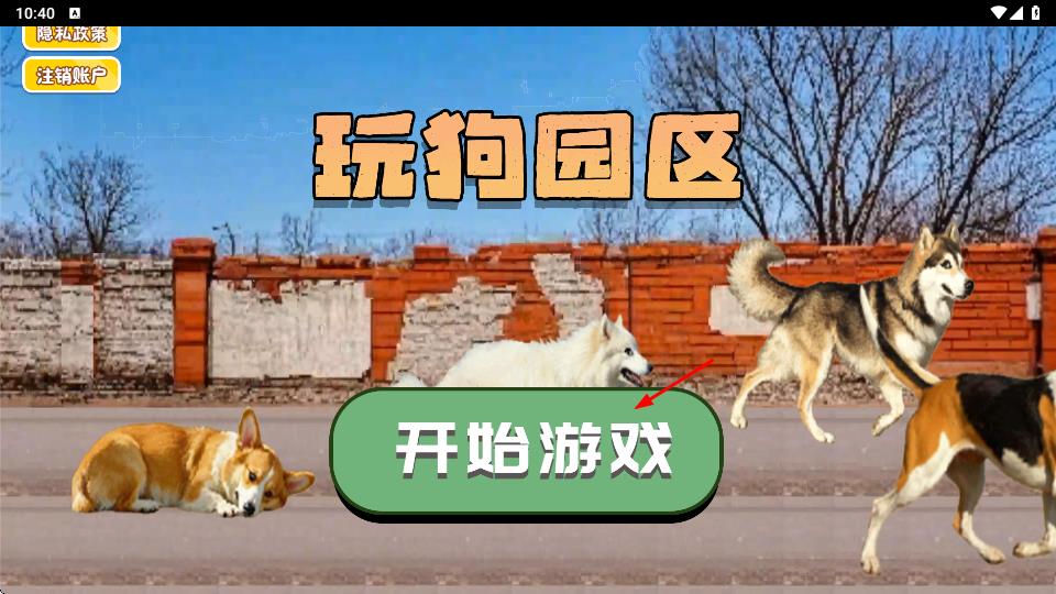 1、打开游戏进入主界面后,点击蓝色【开园按钮】,这是开启养宠之旅的关键操作,确保顺利进入玩狗园区世界。